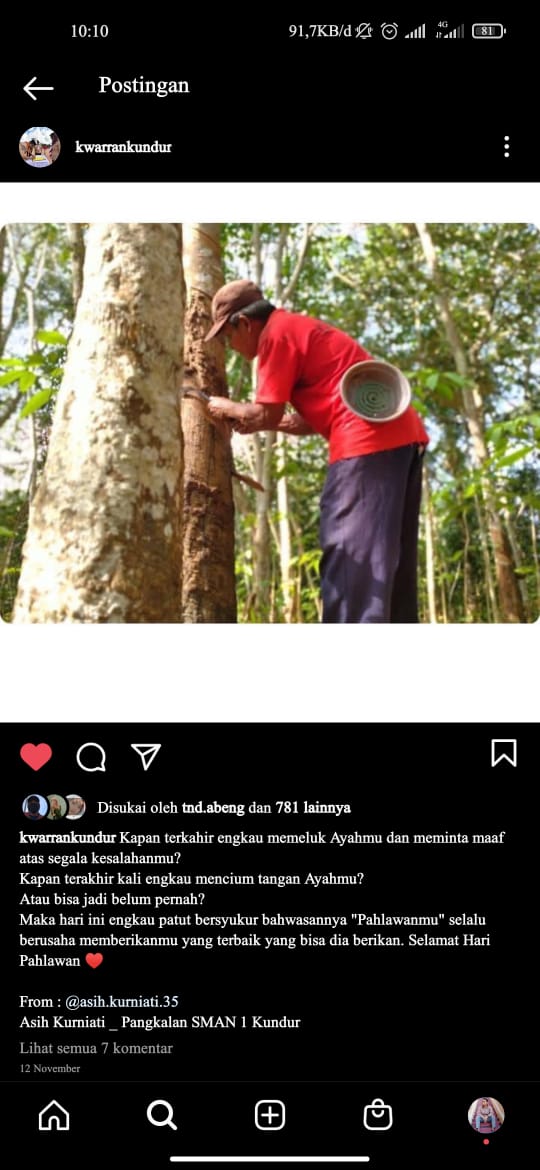 Tanjungbatu, senin (16/11/2020) Ambalan Satya Dharma Putra Putri Pradana Pangkalan SMAN 1 Kundur mengikuti Lomba Virtuala yang dilaksanakan oleh Kwarran 02 Kundur perlombaan yang dilaksanakan untuk tingkat penegak yaitu Vlog Pangkalan dan Dokumenter Pahlawan Serta Like photo Pahlawan sekitar. dan alhamdulillah dari hasil yang diraih oleh pangkalan SMAN 1 Kundur mendapat kan Juara 1 dari perlombaan yang diadakan dari Vlog, Dokumenter, dan Like Photo Pahlawan sekitar..