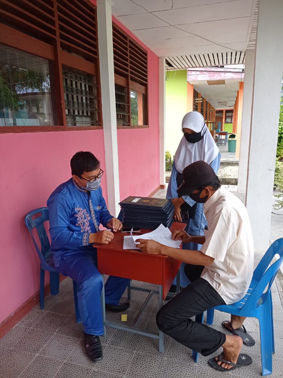 Rapor diserahkan diluar ruangan.