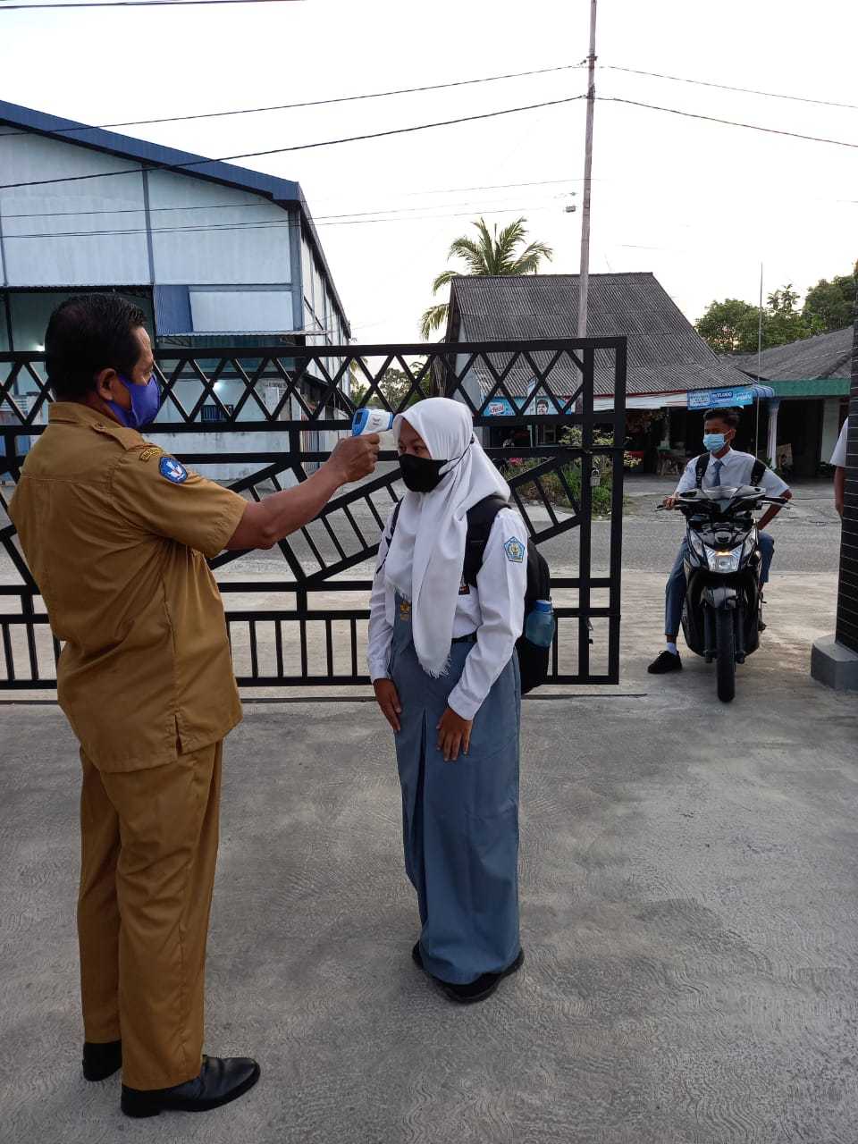 Dikatakan " pembelajar tatap muka dimulai pukul 07.30, untuk para siswa diwajibkan hadir dari pukul 7.00 karna akan dilakukan pengecekan suhu terlebih dahulu sebelum masuk kekelas.