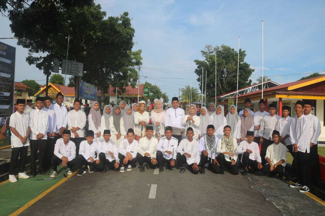 Santri mengikuti Pawai dengan antusias. Rute Pawai dari SPN Polda Kepri menuju Balai Pemuda Tanjungbatu Kota Ratusan pelajar dan santri mengenakan berbagai atribut muslim dan pahlawan nasional berpartisipasi dalam pawai berjalan kaki sejauh kurang lebih 2 kilometer pada Minggu (22/10/2023) pagi.