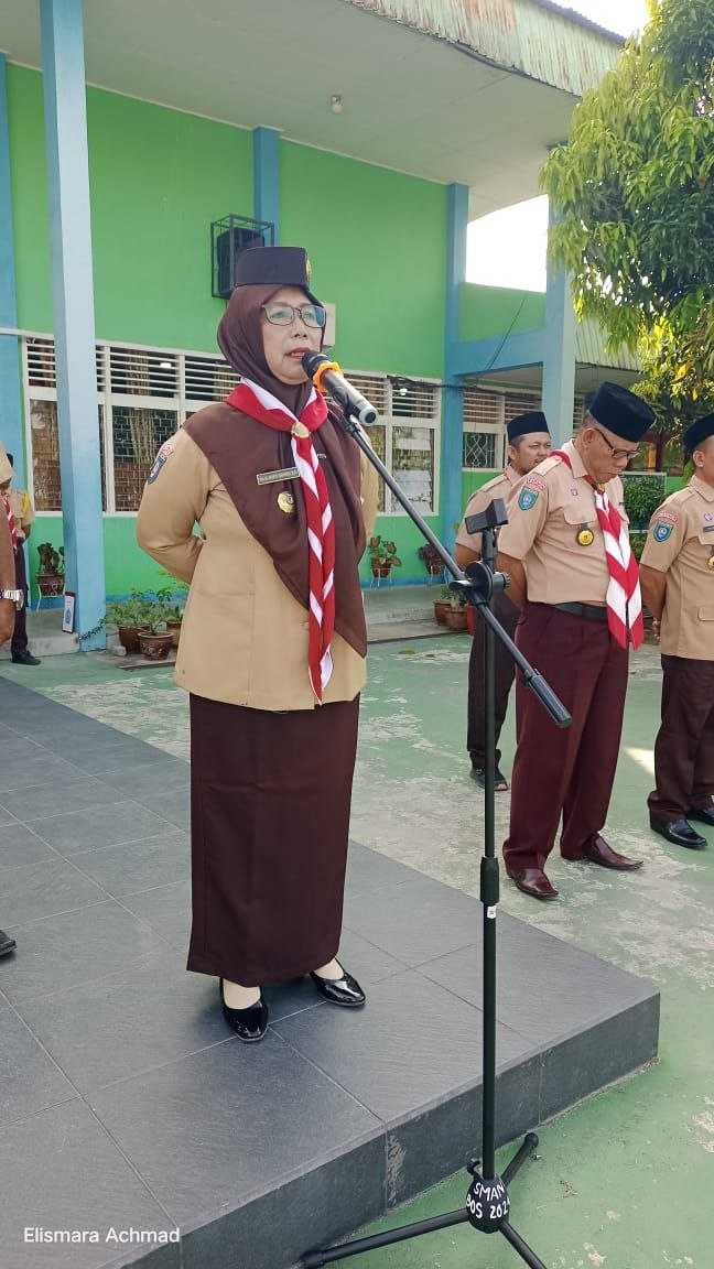 Kak Rahayu Kusrianti,S.Pd, M.Pd - Ka.Kwarran 02 Kundur di dampingi Kamabigus dan Pembina Gudep melantik pengurus Dewan Ambalan Satya Darma Putra Pradana dan Satya Darma Putri Pradana Gudep 02.055 - 02.056 tahun 2024 di Lapangan Upacara, Senin (26/02/2024).