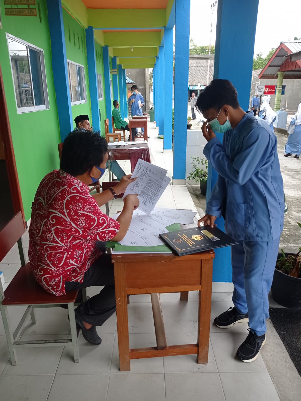 Rapor diserahkan diluar ruangan.