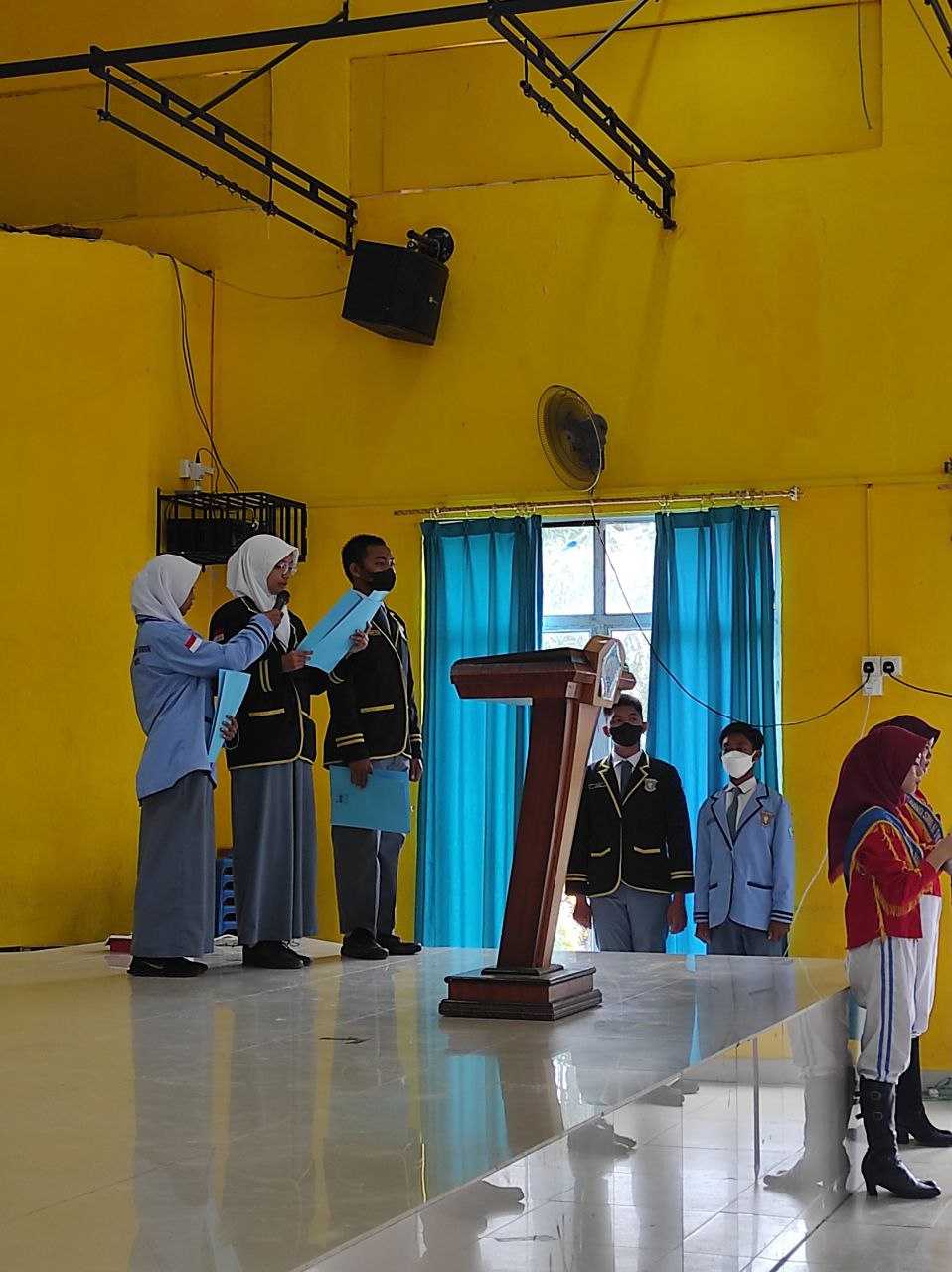 Tanjungbatu - SMA Negeri 1 Kundur, Menggelar Upacara Peringatan Hari Pahlawan di dalam Aula karena kondisi hujan yang tidak kunjung reda, Rabu 10 November 2021. Upacara berlangsung khidmat, tertib dan mematuhi protokol kesehatan, karena saat ini pandemi covid-19 masih melanda wilayah Indonesia. Peserta Upacara dari perwakilan, Osis,paskibra,dan beberpa siswa yang memakai pakaian profesi dan Bapak/Ibu guru SMA Negeri 1 Kundur. Peringatan Hari Pahlawan Tahun 2021 mengambil tema “Pahlawanku, Inspirasiku”, dalam amanat kepala sekolah Drs.Abdullatip membacakan pidato Menteri Sosial. Pembacaan pesan-pesan Pahlawan Nasional yang di bacakan oleh siswa-siswa SMA Negeri 1 Kundur.