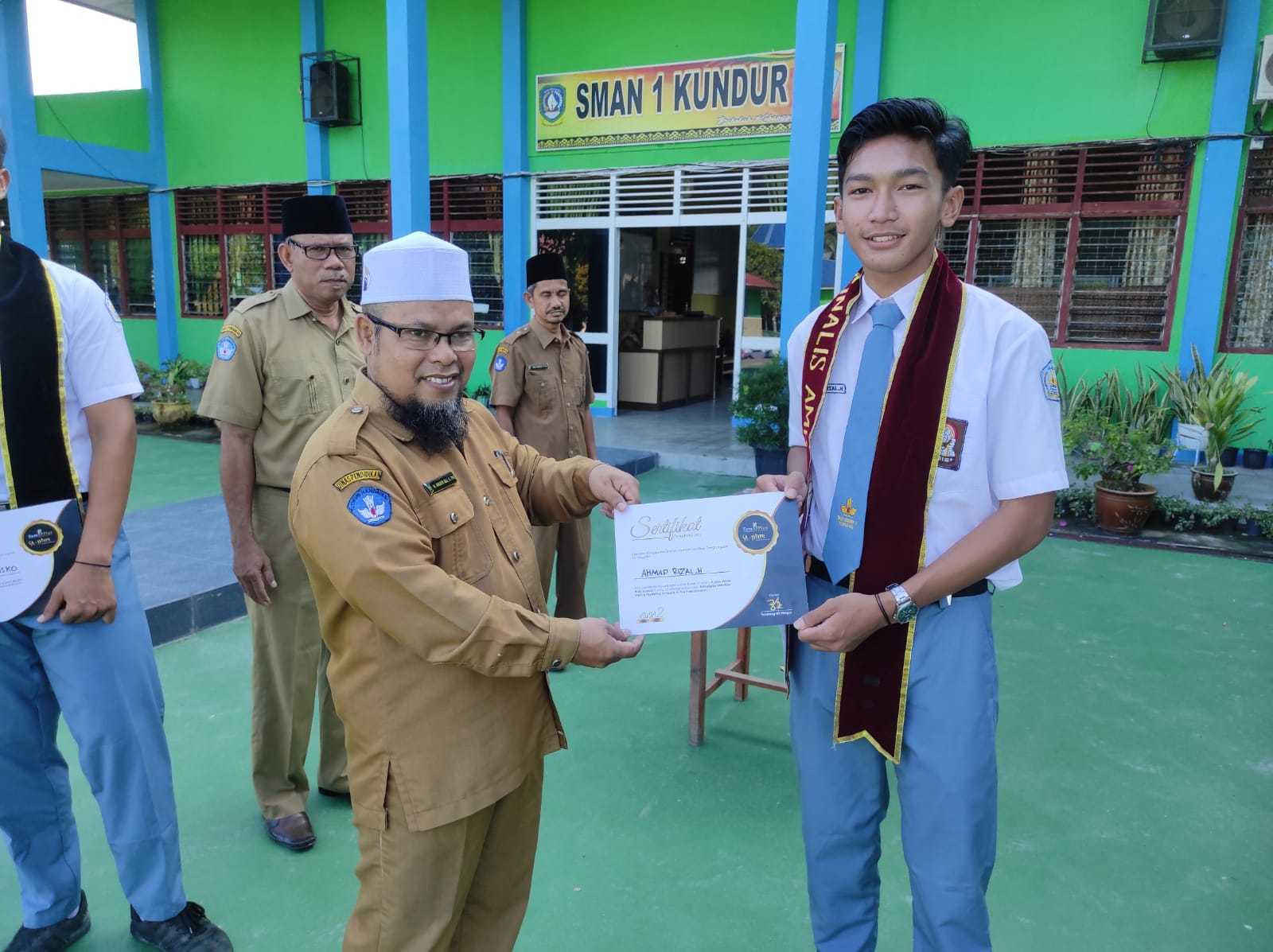 dan alhamdulillah diantara kami bertiga pada saat grand final masuk ke Top 15 dan melanjutkan lagi dengan Q & A dan alhamdulillah yang menjadi juara diantara kami bertiga yaitu Henggki Fransisco dengan mendapatkan juara sebagai Runer Up IV dan reza dan andika hanya sampai ke Top 15 saja itu adalah pencapaian yang sangat luar biasa bagi SMAN 1 Kundur bahwa disini kami tidak hanya bergerak di bidang akademik saja dan kami juga membuktikan di bidang non akademik dengan mengikuti beberapa kegiatan dan alhamdulillah selalu membawa buah tangan untuk sekolah tercinta.