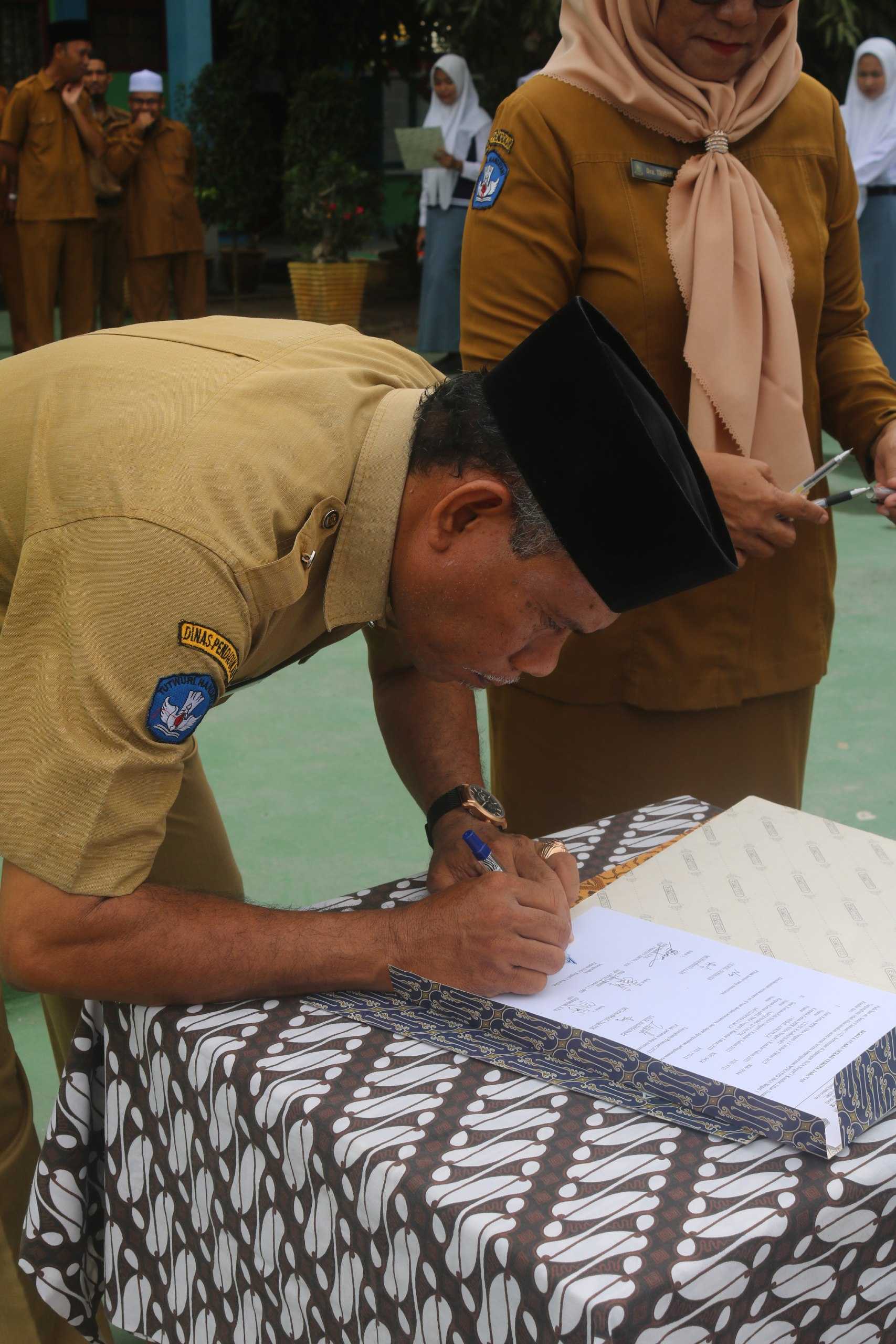 Setelah pelaksanaan serah terima jabatan dari ketua OSIS periode 2022 kepada ketua OSIS baru periode 2023, dilaksanakan prosesi pengambilan sumpah pengurus baru OSIS oleh Bapak Drs.Zurkani, selaku kepala sekolah. Beliau menyampaikan ucapan terima kasih kepada pengurus OSIS masa bakti 2022 yang telah menyelesaikan masa baktinya dengan baik selama satu tahun periode kepengurusan dan juga memberikan selamat kepada pengurus OSIS masa bakti 2023. Beliau berharap para pengurus OSIS baru dapat melaksanakan tugas dengan sebaik-baiknya, lancar, bertanggung jawab, dan amanah.