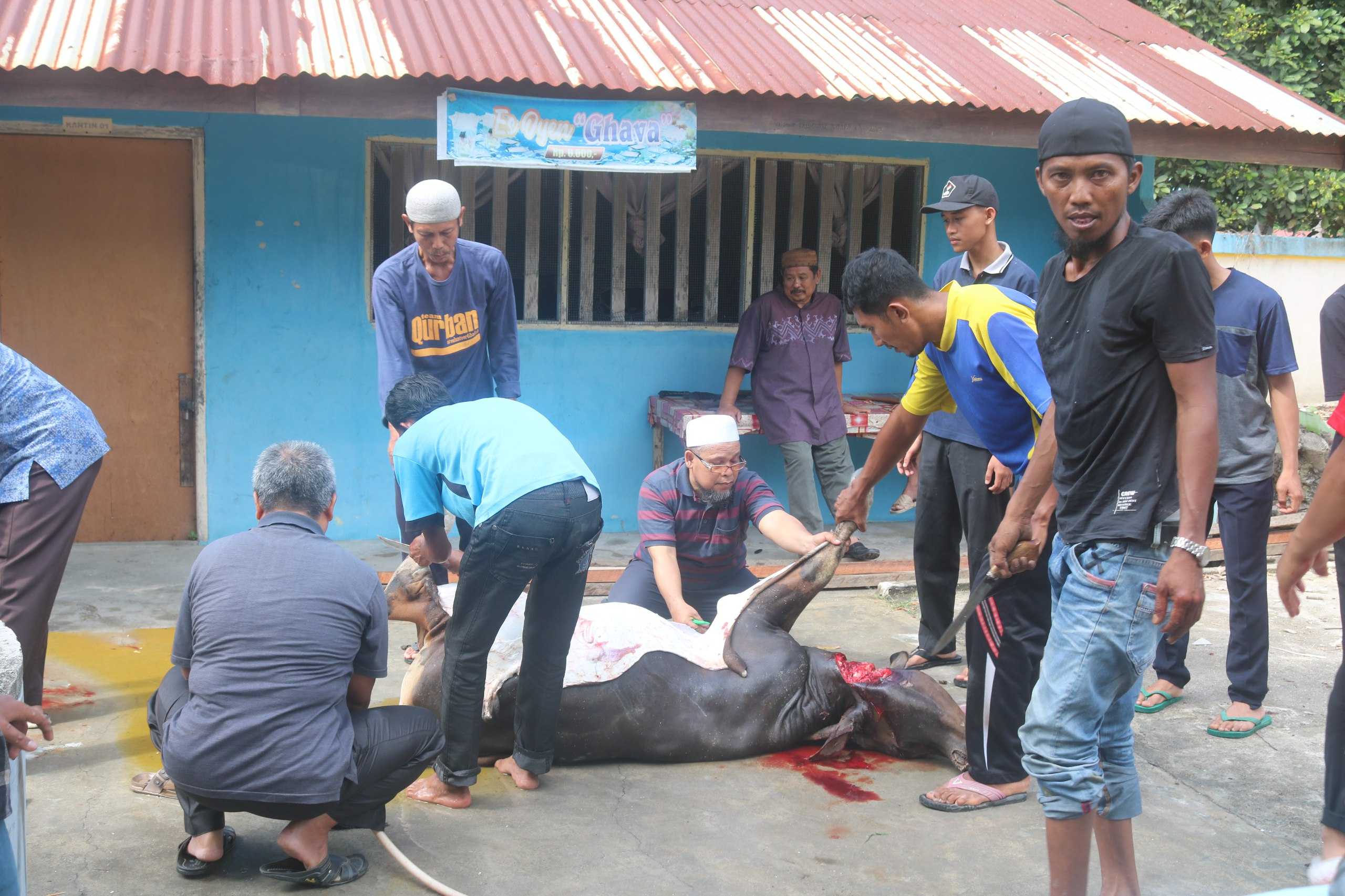 Penyembelihan sapi itu disaksikan langsung oleh Kepala Sekolah SMA Negeri 1 Kundur Drs. Zurkani, para guru, staf serta siswa dan siswi.